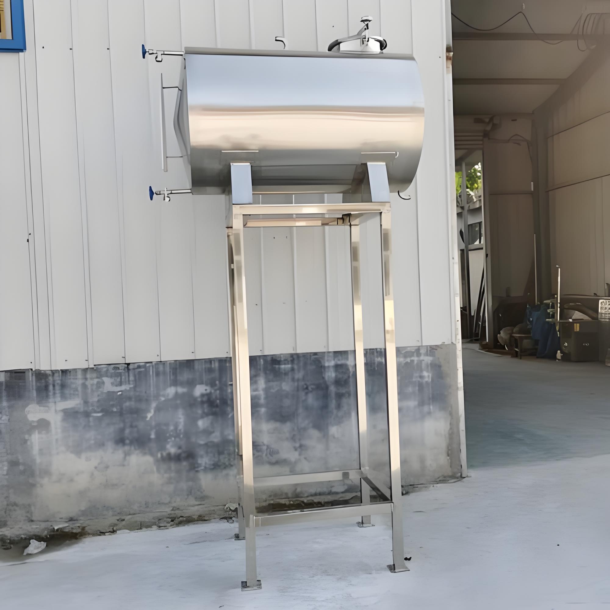 由不銹鋼材質(如 304、316L)制成,具有耐腐蝕、易清潔的特點,罐體上方設進料口,底部設出料口,側面設液位計接口(如玻璃管液位計、磁翻板液位計)。